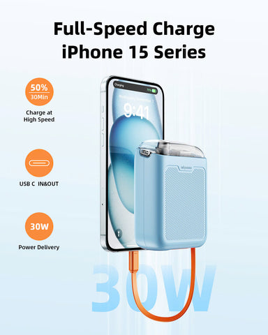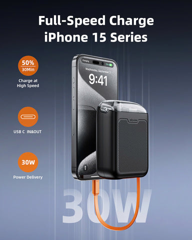 Two-Way Charging Power Bank, Built-in Retractable Cables, Dual Device Charging, Travel Essential Phone Power Bank