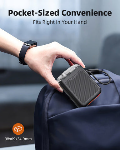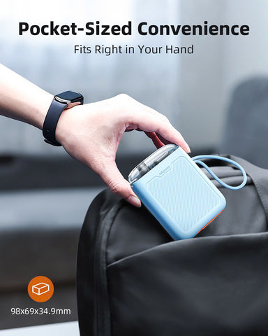 Ultra-Portable Design: Compact and lightweight, this mini power bank easily slips into your pocket, purse, or backpack, making it the perfect travel companion. Its sleek design ensures you can take it anywhere without adding bulk.