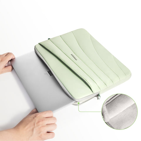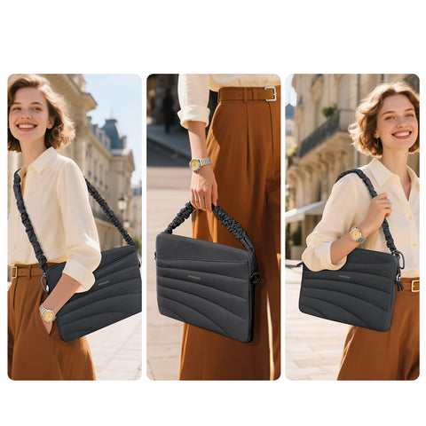 The main compartment holds a 14 inch laptop, while the front and back pockets hold accessories and other essentials. In addition, the zipper design protects your privacy.