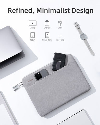 [Quick and Easy Access] - The slim laptop sleeve with front pocket is designed to hold chargers, cables, mouse, external backup drives, and other essentials. With a magnetically-sealing closure, this extra pocket is always within reach for ultimate convenience and ease of use.